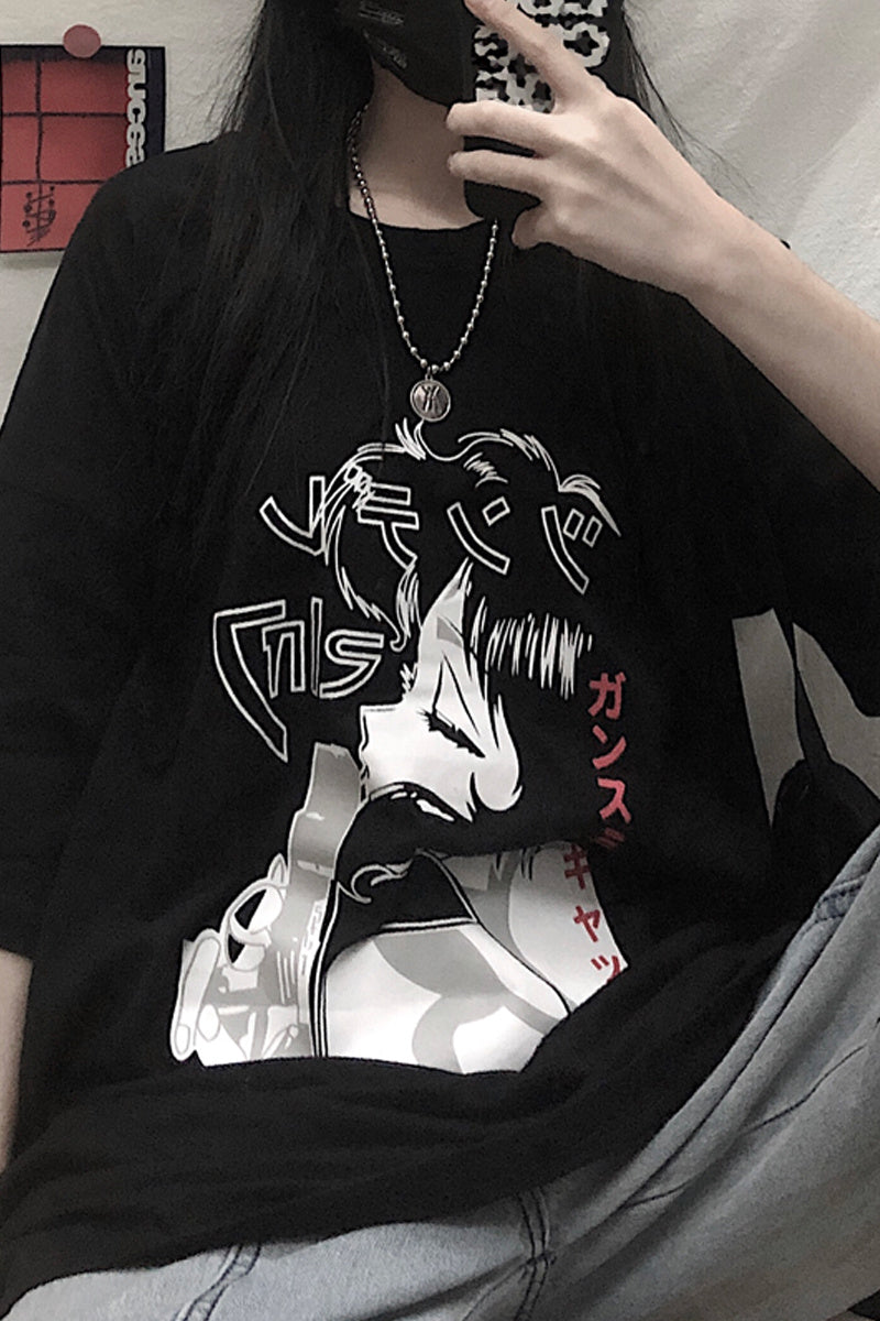 Applicable age: 18-24 years old Made of: Cotton Size: ML Pattern: cartoon anime Style: Commuter Commuter: Korean Collar type: round neck Popular elements: printing Main color: white black light gray Sleeve type: conventional Ingredient content: 96% and above sleeve length: short sleeve Length: regular Clothing version: loose