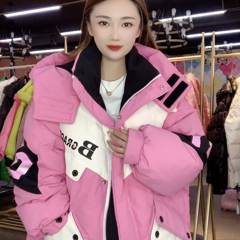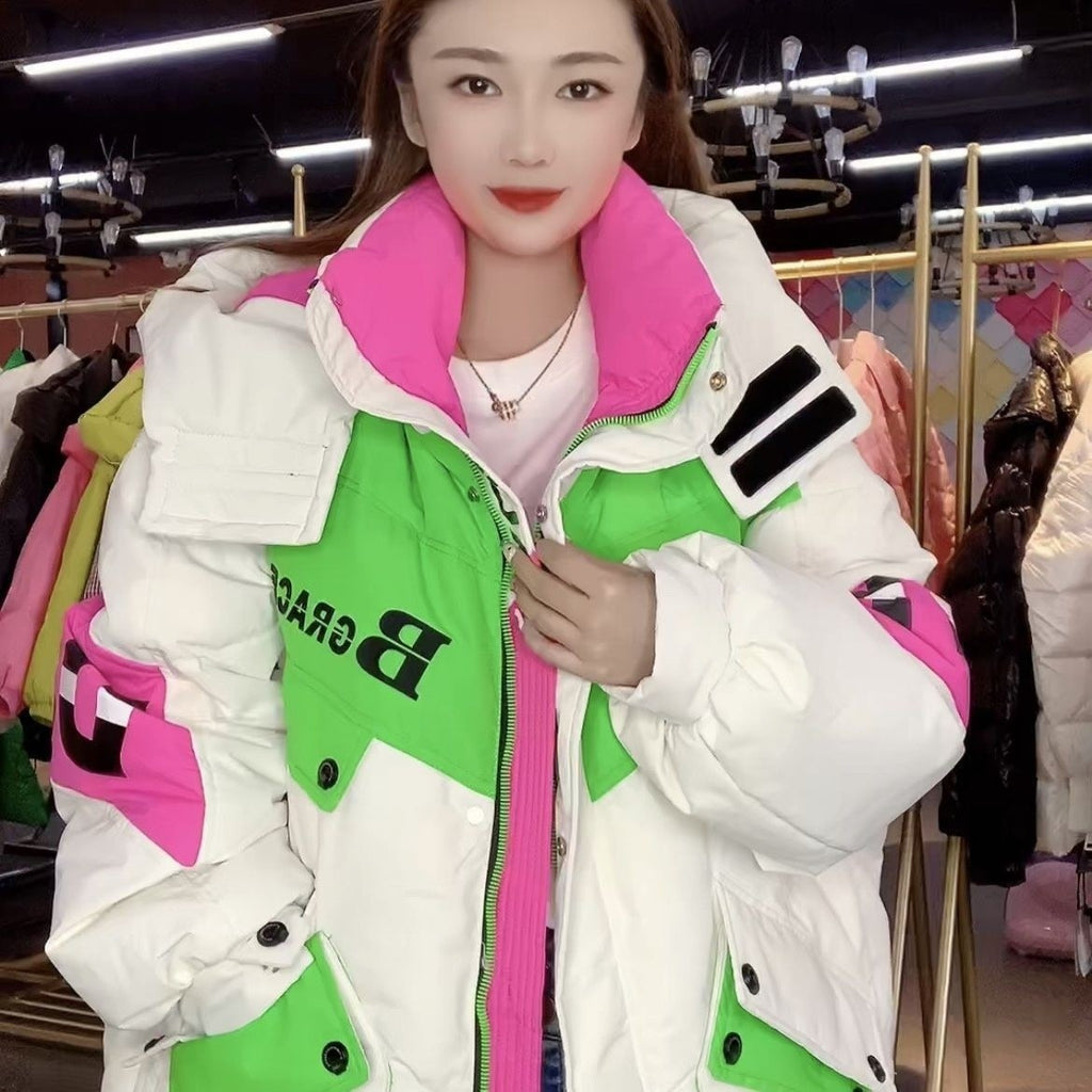 Product information: Thickness: thick Fabric name: Polyester Fiber Velvet content: 86% to 90% Color: white, black, pink Main fabric composition: Polyester Fiber (polyester) Size: M,L Version: Loose Length: mid-length (65cm Applicable Gender: Female Style type: temperament commute Applicable age group: Adult Sleeve length: long sleeve Filler: white duck down Popular elements: Three-dimensional decoration Style: commute style