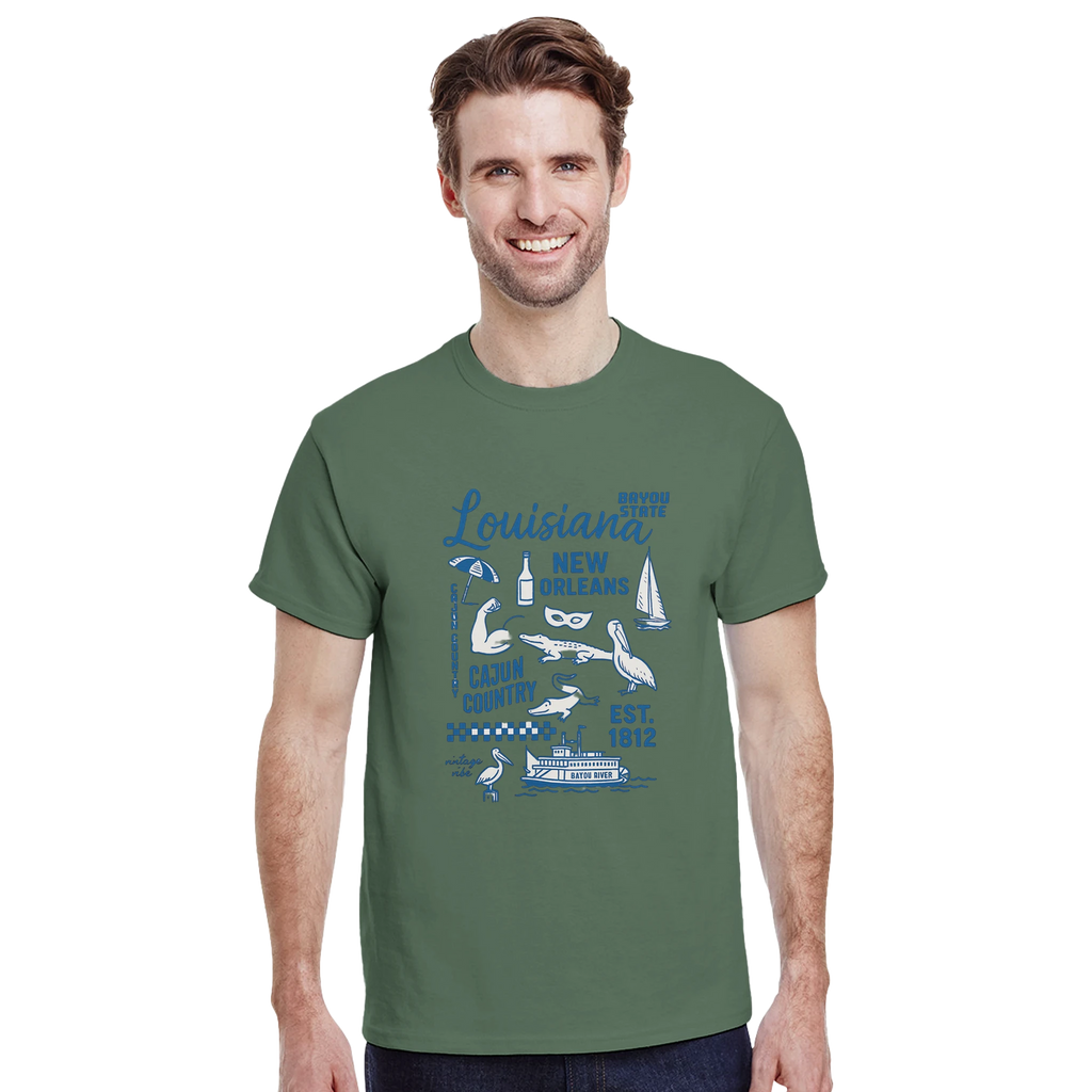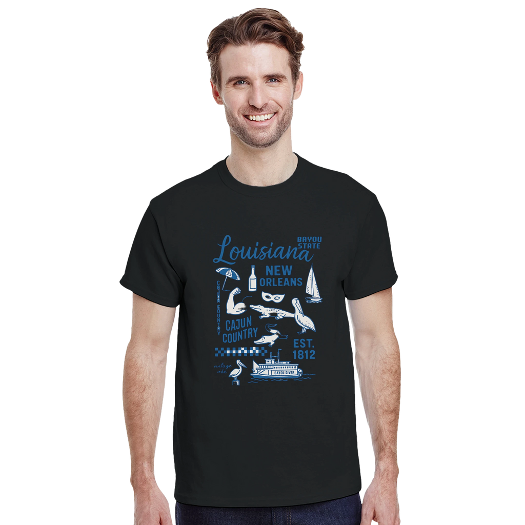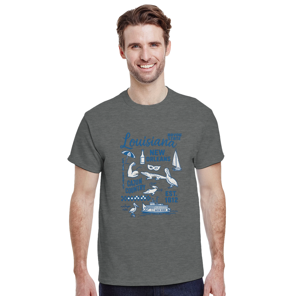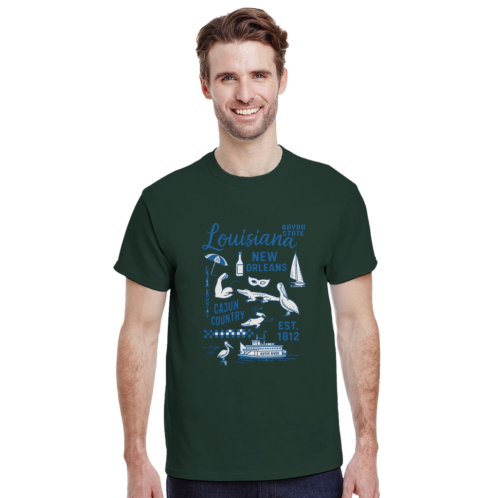 Whether you're exploring the vibrant streets of New Orleans or enjoying a casual day out, this t-shirt is the perfect choice. Order now to celebrate the rich culture of Louisiana in style!