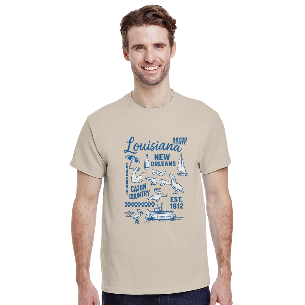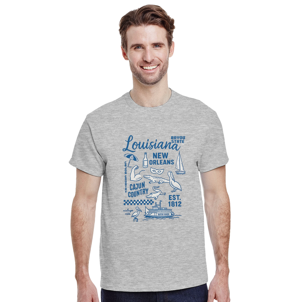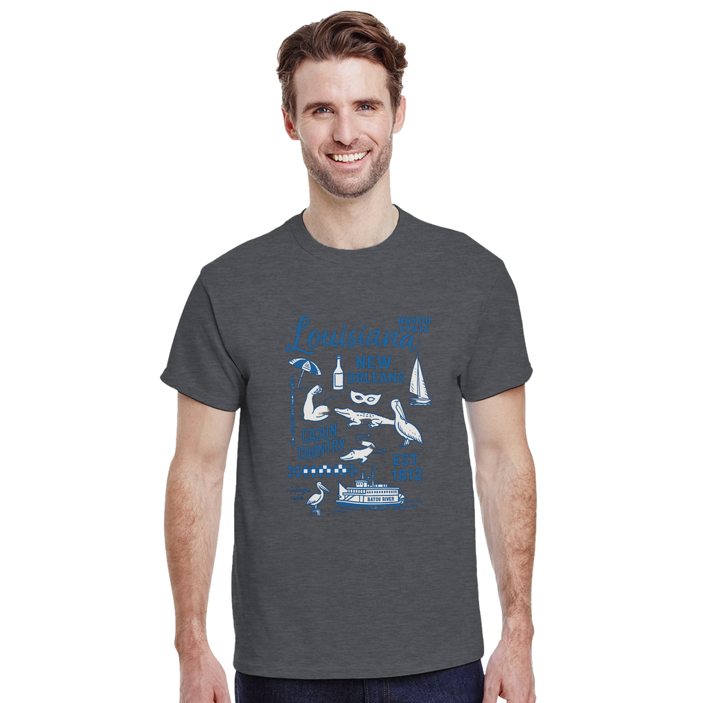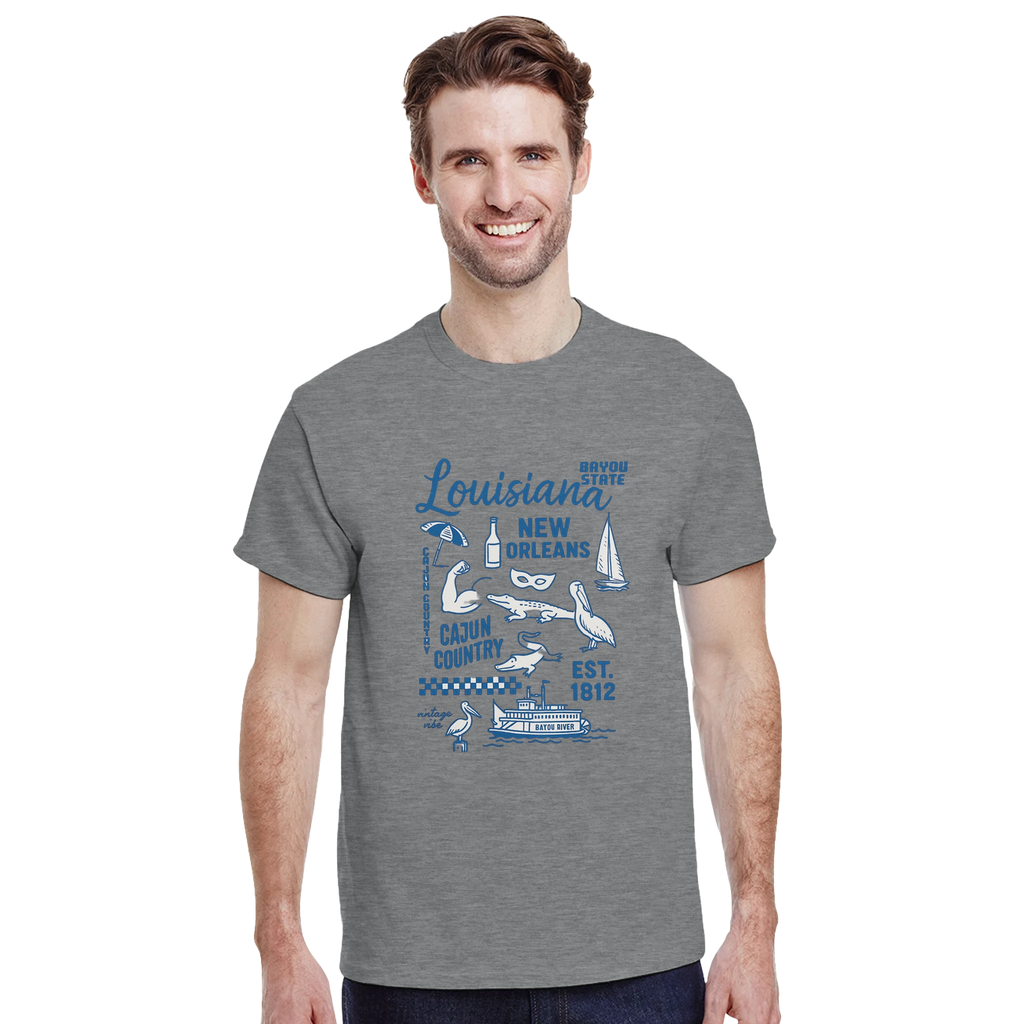 Whether you're exploring the vibrant streets of New Orleans or enjoying a casual day out, this t-shirt is the perfect choice. Order now to celebrate the rich culture of Louisiana in style!