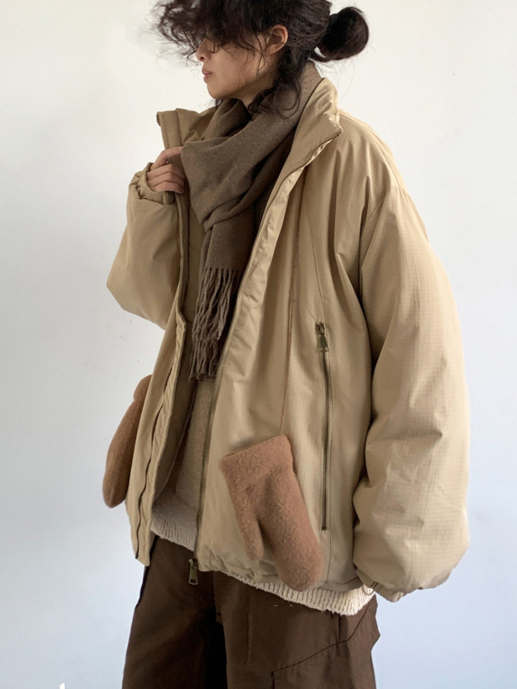 Product information: Length: common style Version: Loose Collar type: stand collar placket: zipper Color: khaki creamy-white Black Material: Polyester Fiber Size: M L XL 2XL